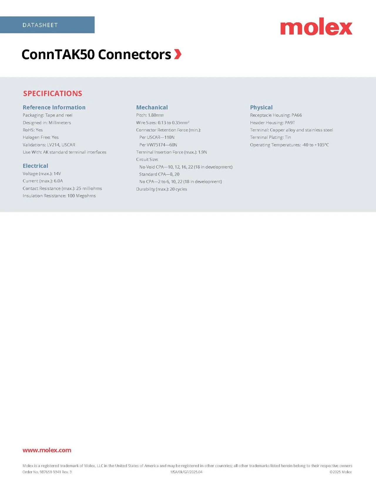 Molex莫仕丨ConnTAK50无空隙CPA连接器