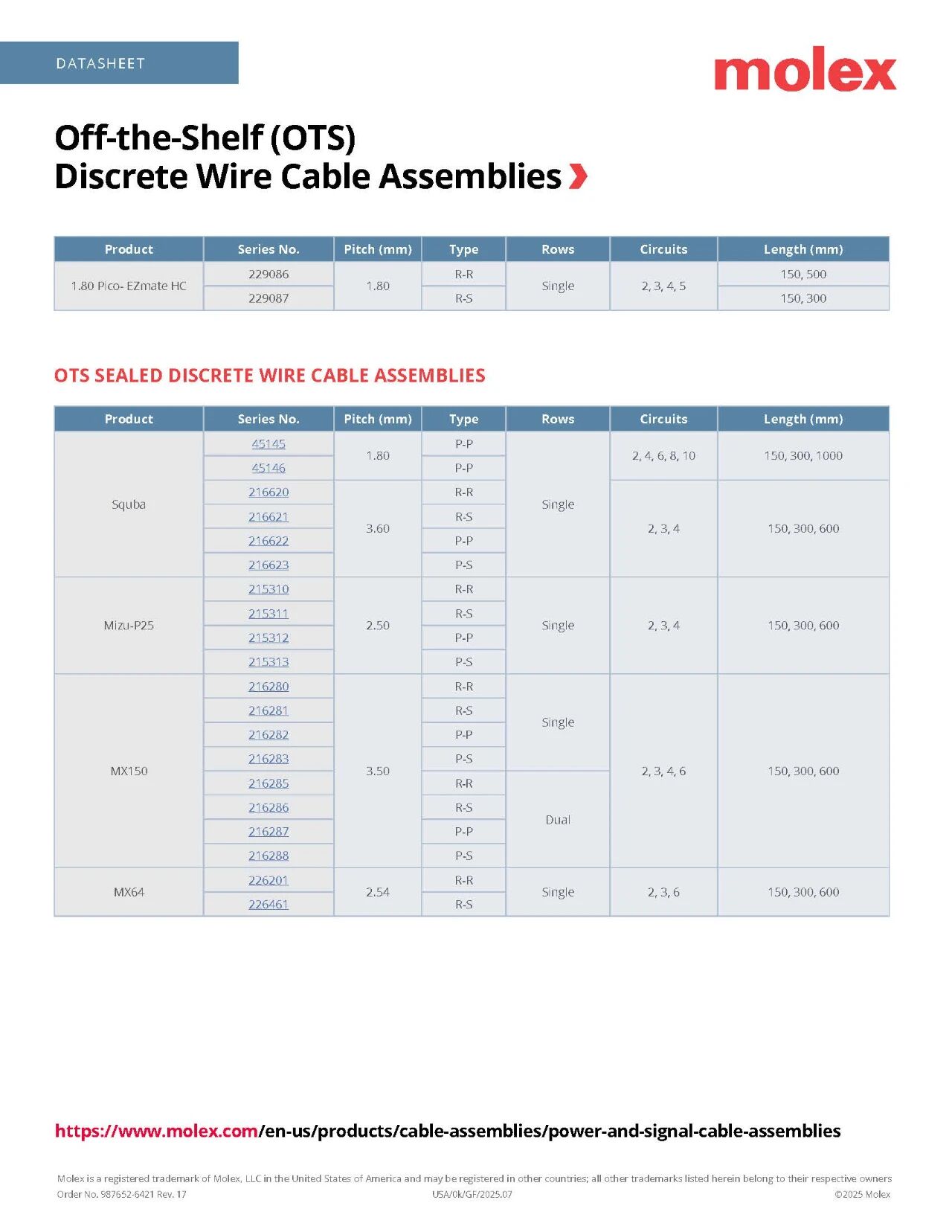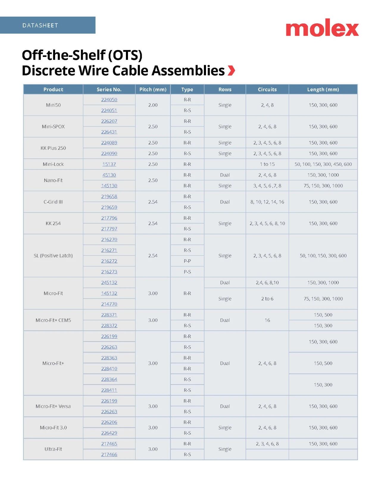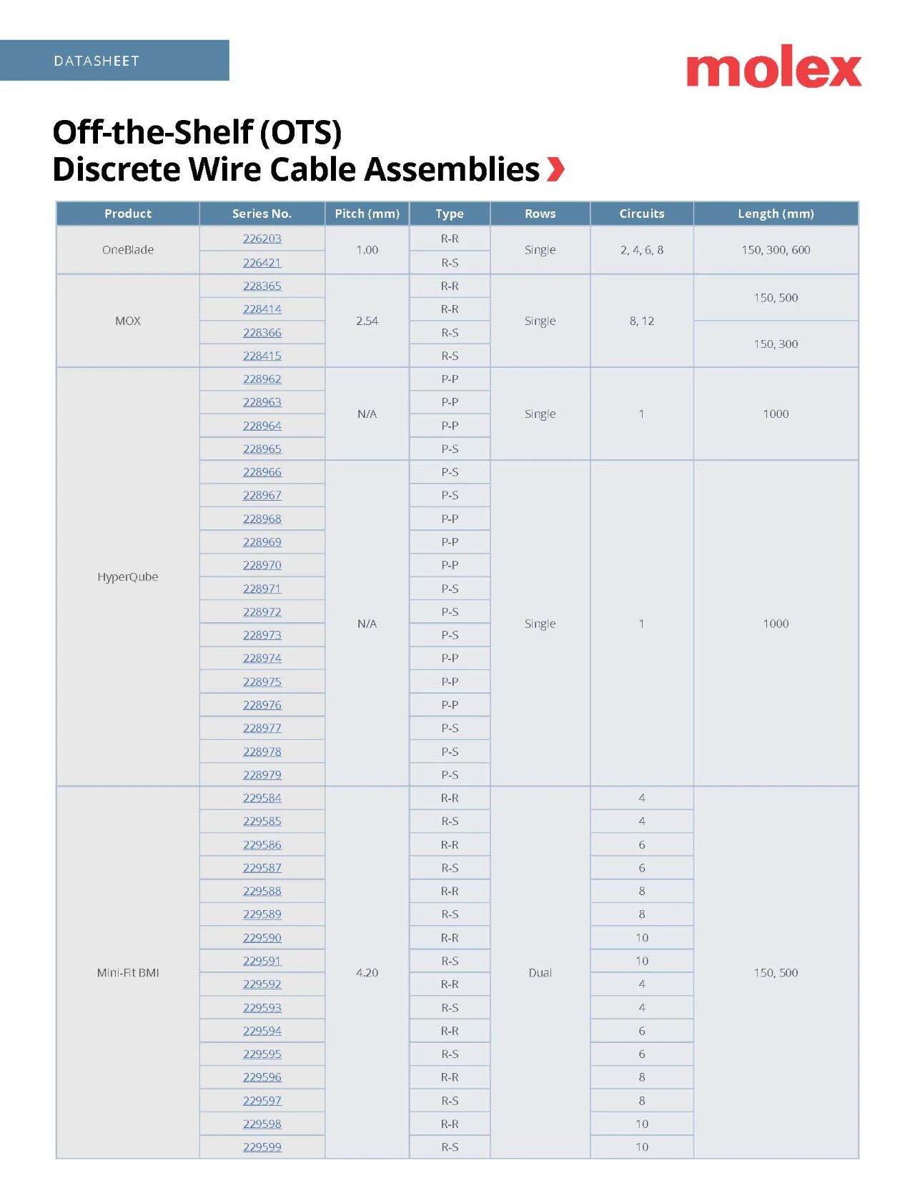 Molex莫仕丨NPI扩展产品:现成的1.80毫米高电流电缆组件