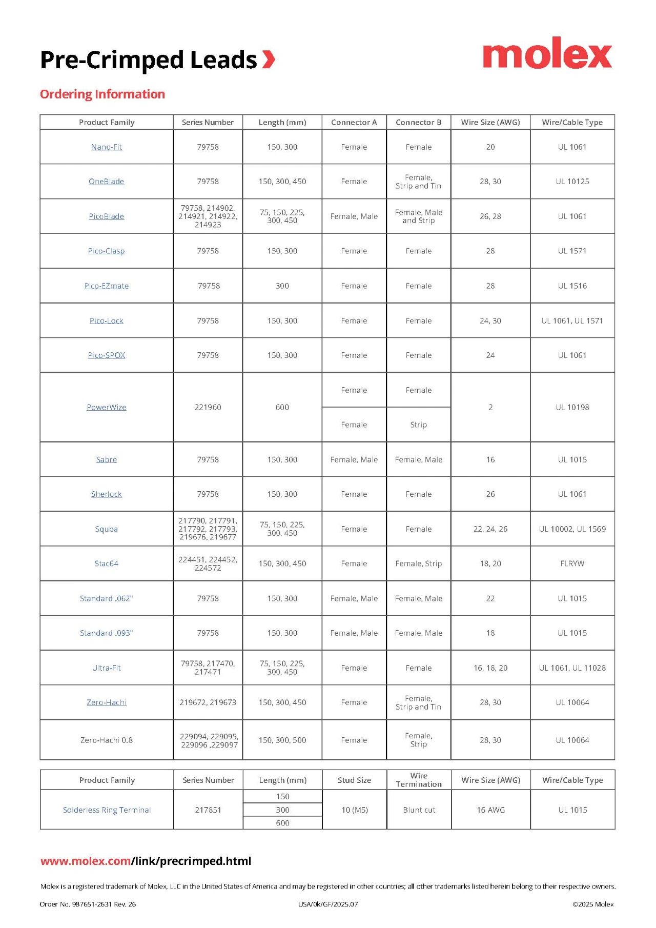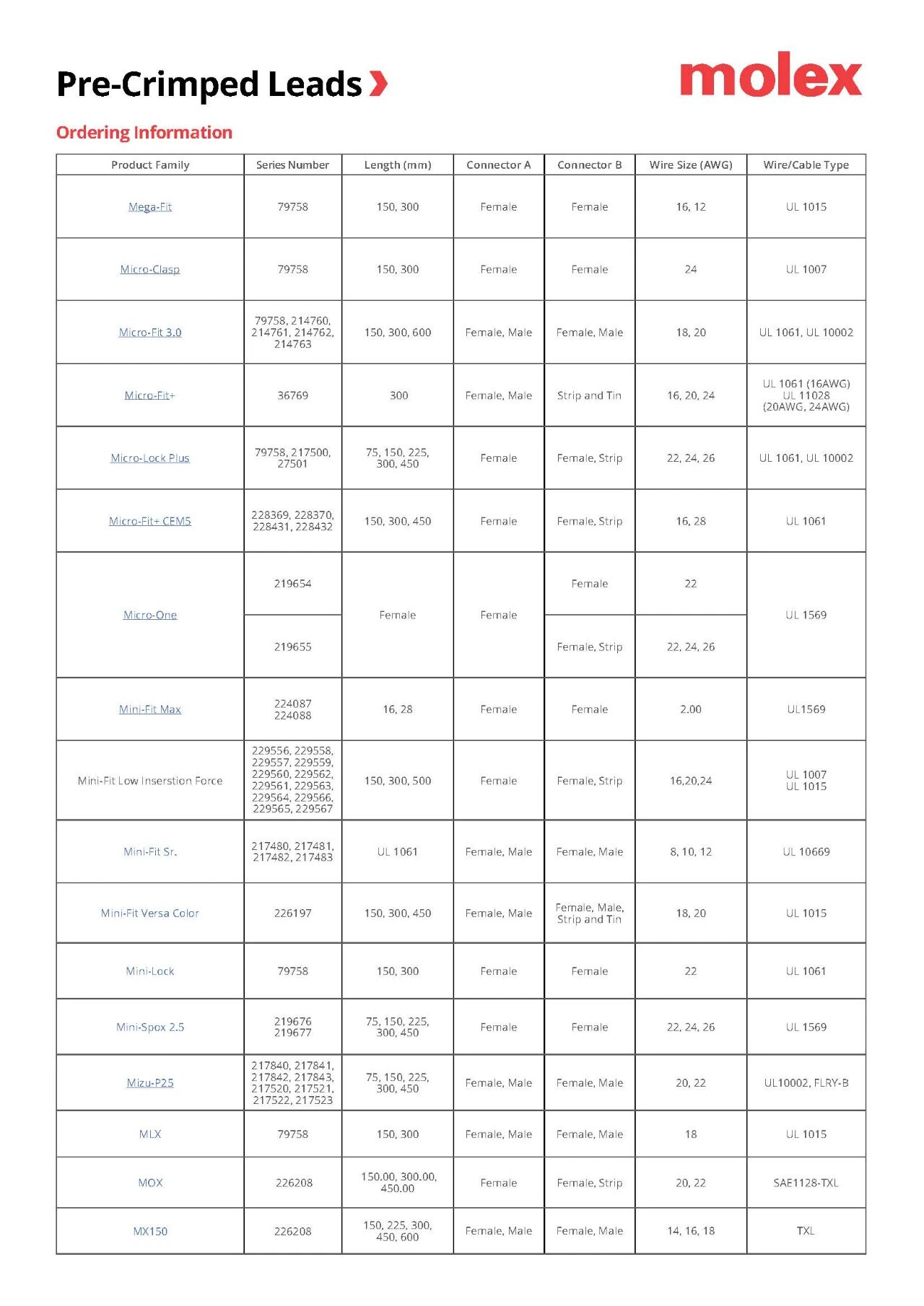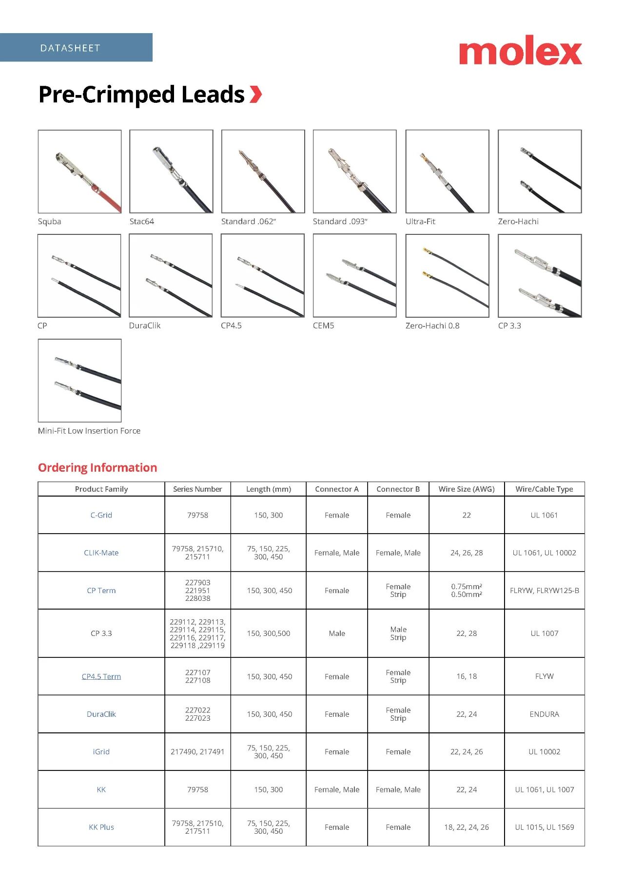 Molex莫仕 NPI丨现成(OTS)CP-3.3预压接导线